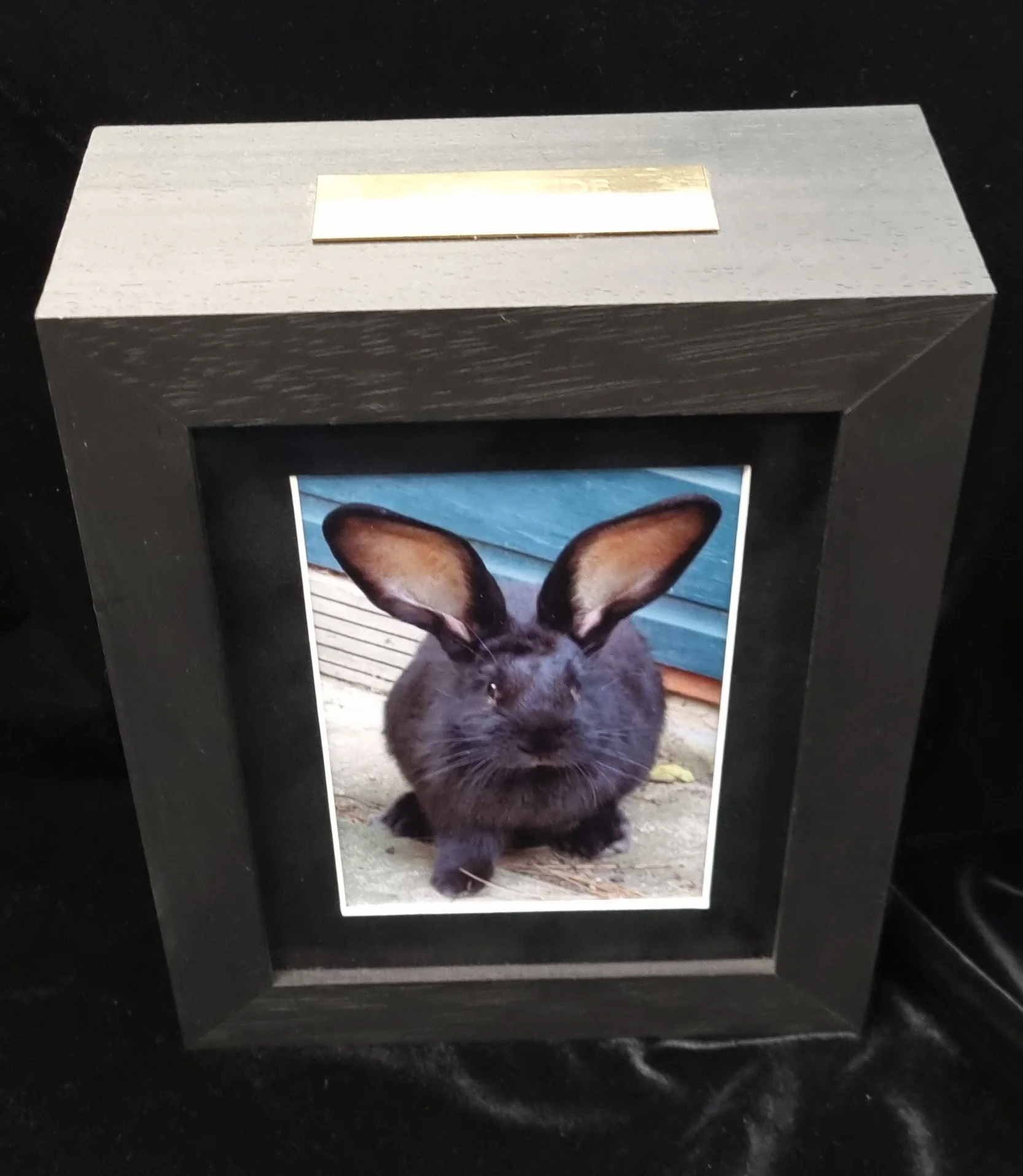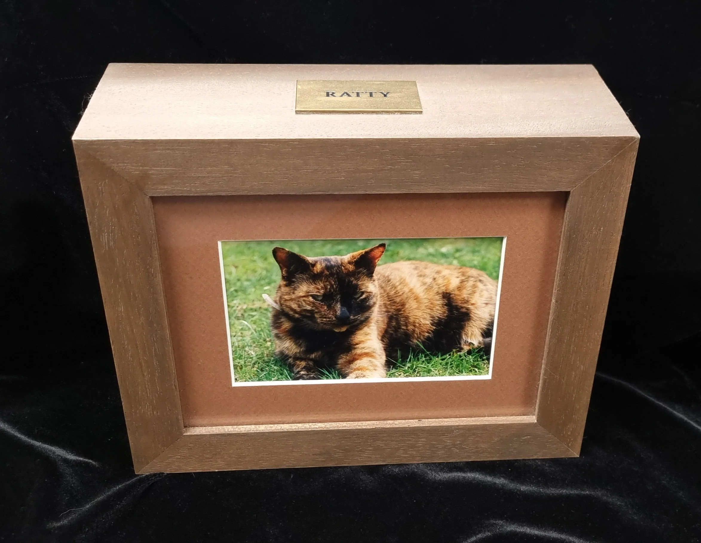 The box has a removable back so you can place your pets ashes inside, along with any keep sakes. This is my beloved Princess Ratty.