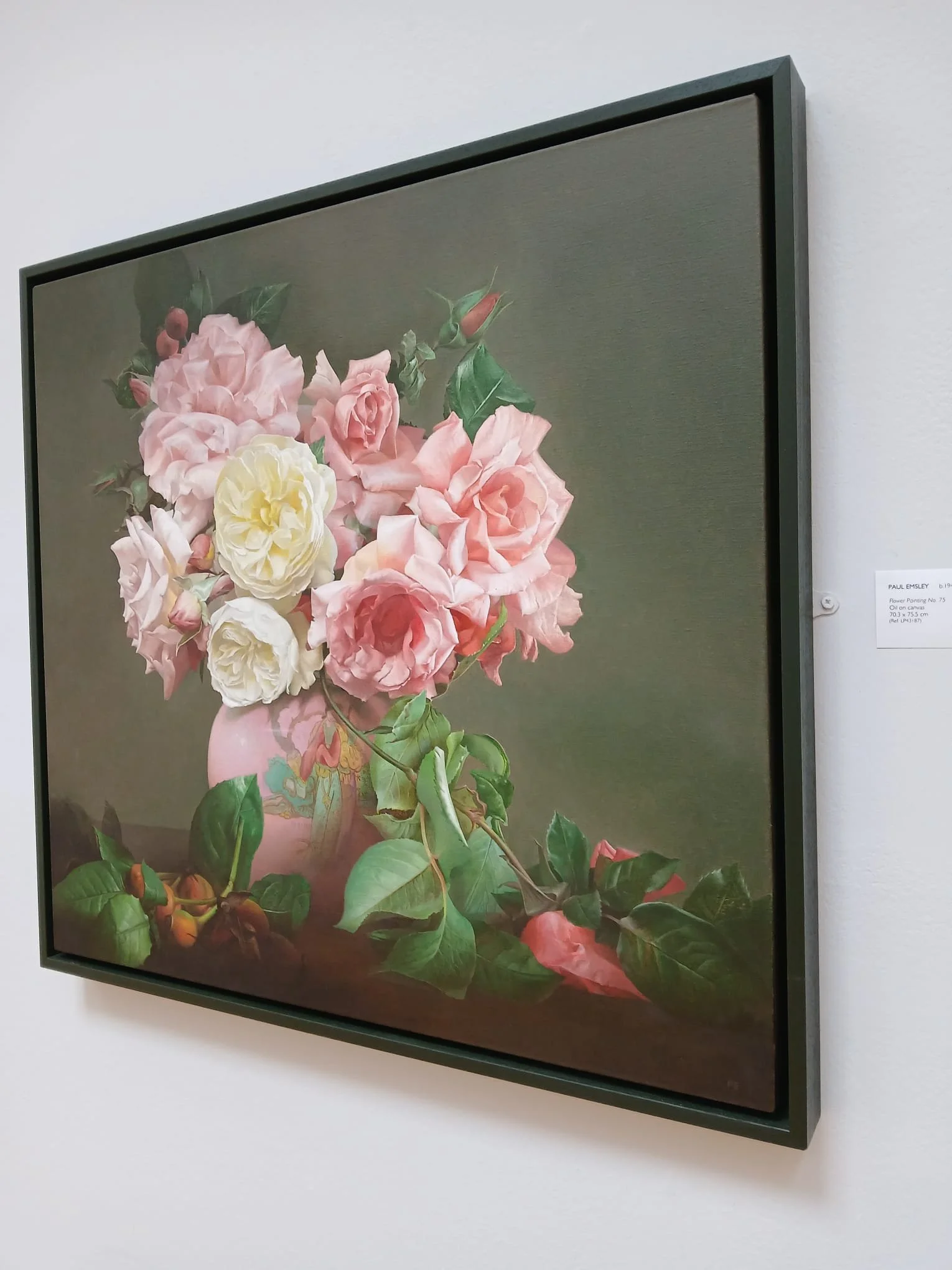 This tray frame has been custom stained to compliment the oil painting on stretched canvas, and on display in a London gallery.