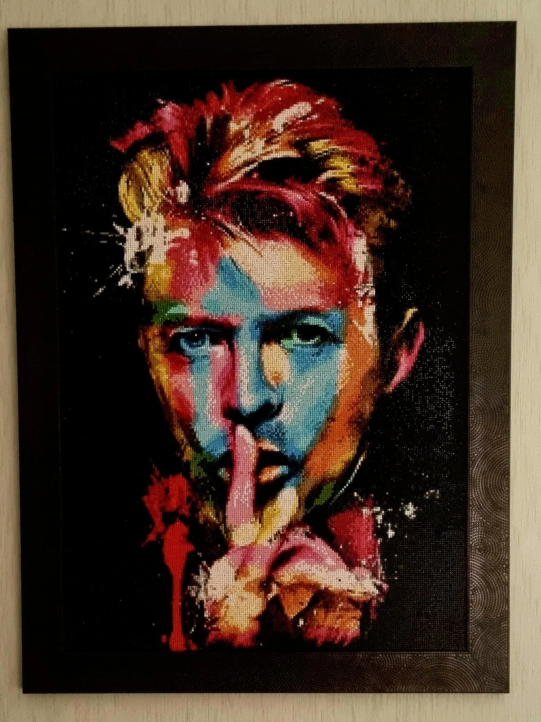 This diamond painting picture was sealed with jigsaw puzzle glue after it was completed, so there is no need for glass and the texture remains.