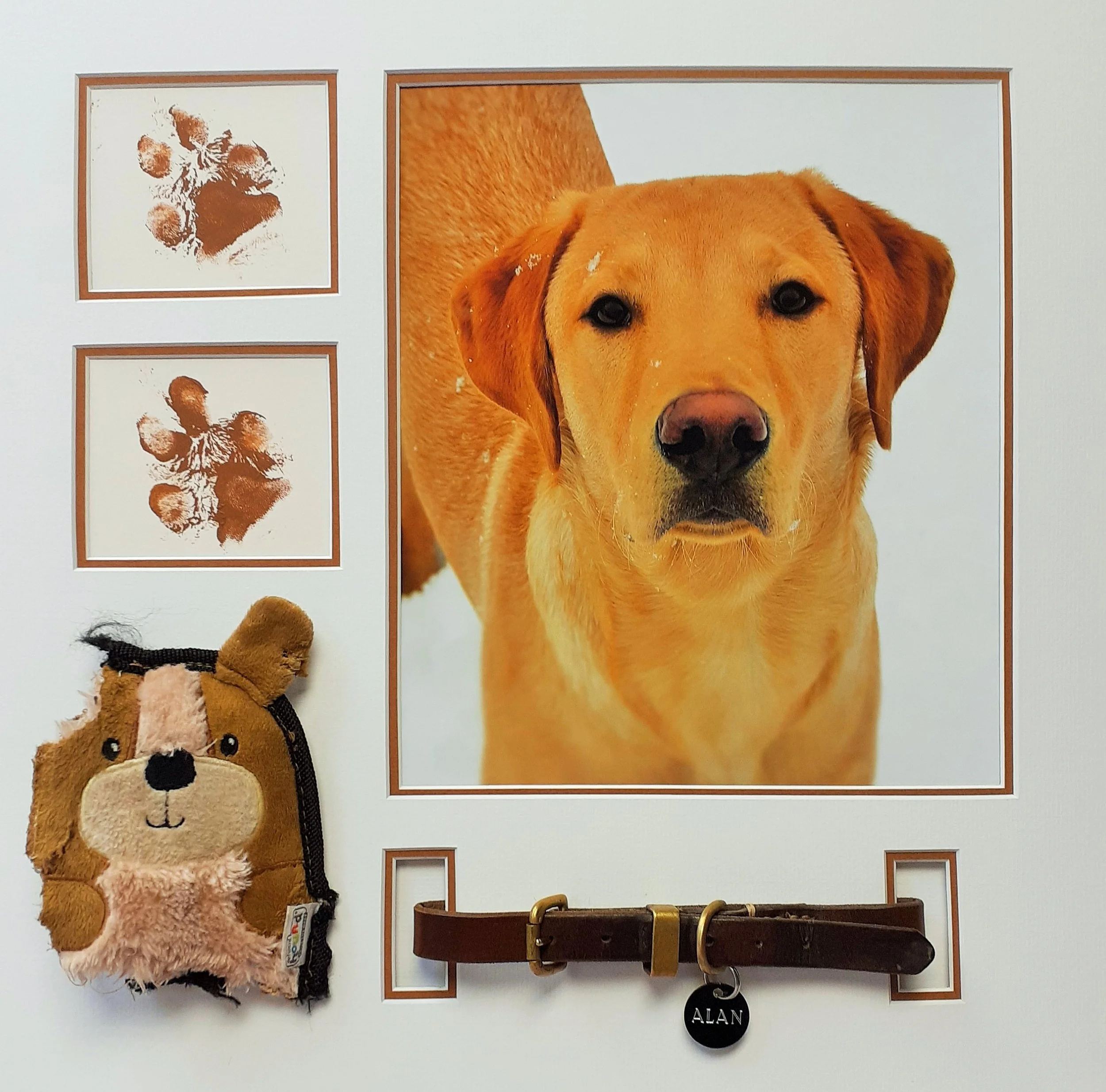 Use shadow boxes to create three-dimensional displays. Incorporate photos, favourite toys, a collar, or even a paw print. This way, you can beautifully encapsulate the personality and essence of your pet in a unique way.